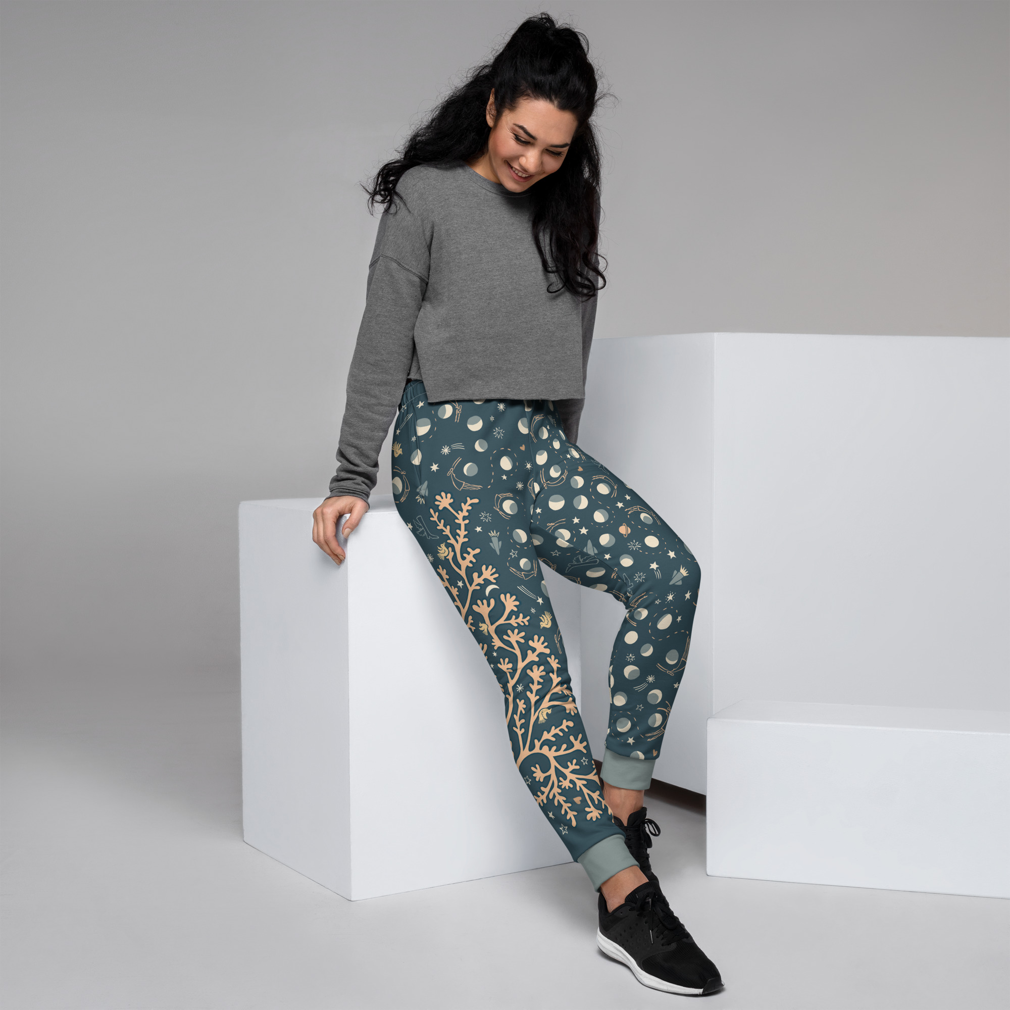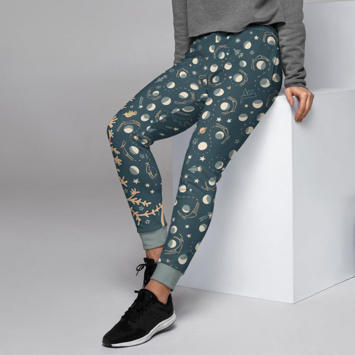 Birds and rockets, winged boots, a coral tree, and motherhood navigating lunar time – dream your wildest dreams and bring them home to earth. You’ve found your next favorite pajama joggers! Made from a soft cotton blend, these sweatpants feature a vibrant print that won’t fade, so they can stay in your wardrobe for a long time.